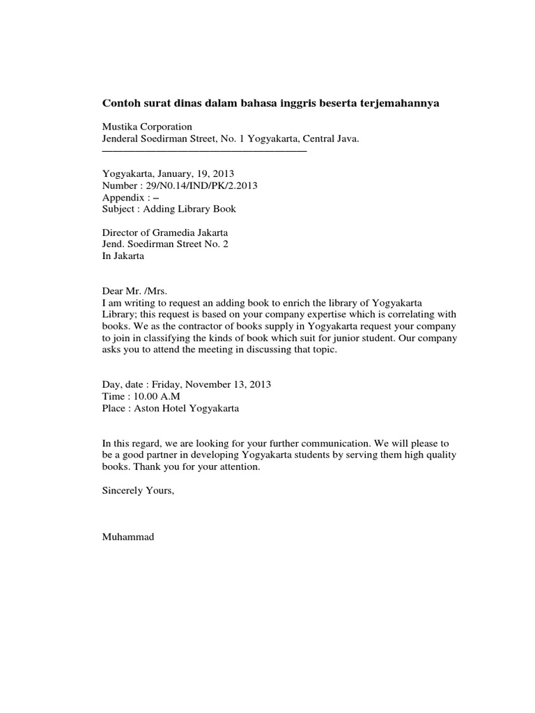 Surat sendiri pun memiliki dua jenis atau macam yaitu surat formal dan surat non formal. Contoh surat resmi dalam bahasa inggris dan artinya. Surat resmi memiliki fungsi sebagai medimemberikan informasi kepada pihak. Surat merupakan sebuah media komunikasi lewat media kertas. Contoh pidato bahasa inggris singkat dan artinya contoh pidato bahasa inggris singkat tentang islam.
